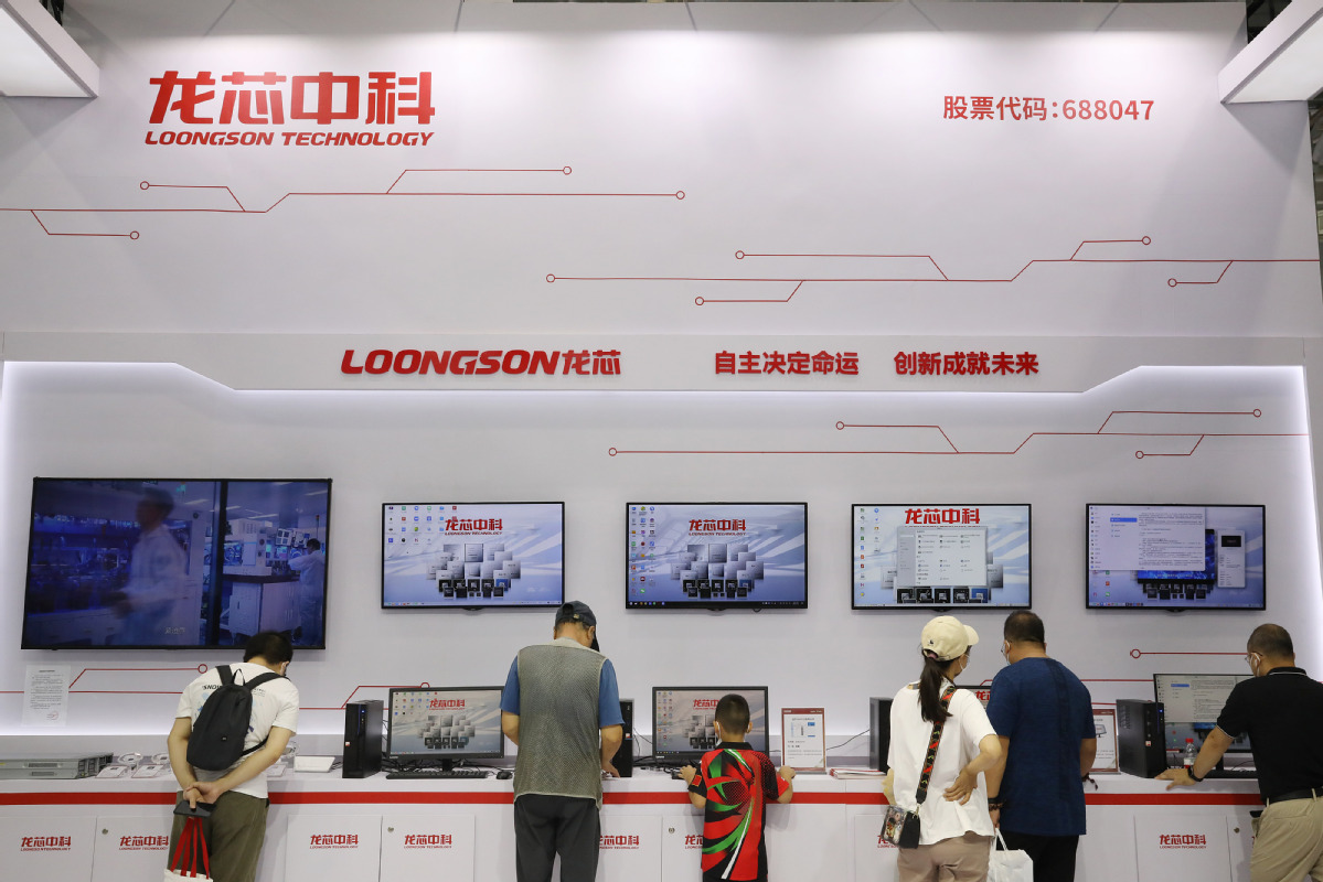 A view of the booth of Loongson Technology during an expo in Beijing. (CHINA DAILY)