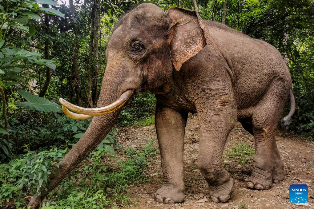 KUNMING, Aug. 12 (Xinhua) -- A Bao was once notorious in downtown Pu'er City in Yunnan Province. His antisocial antics even caused concern among local authorities. Today he lives alone deep in the dense forests of southwest China's Xishuangbanna. A Bao is happy, this is, after all, paradise for an elephant.
