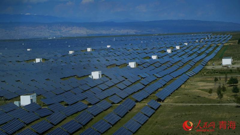 Numerous photovoltaic panels create a magnificent spectacle of a "blue ocean" in Hainan Tibetan Autonomous Prefecture, northwest China's Qinghai Province. (People's Daily Online/Gan Haiqiong)