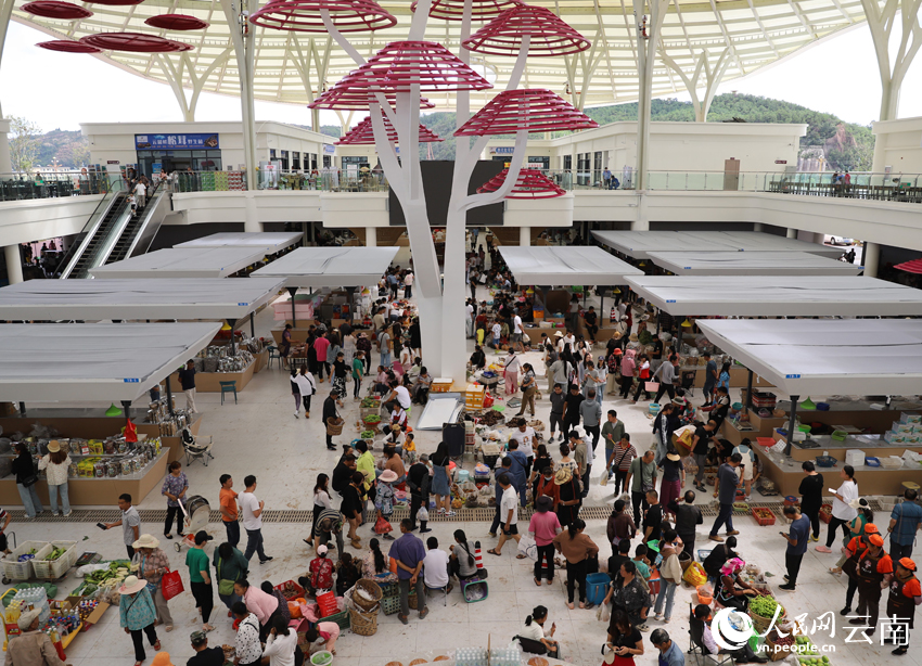 Photo shows a busy scene at the Yunnan Nanhua International Wild Fungus Trading Center. (People’s Daily Online/Li Faxing)