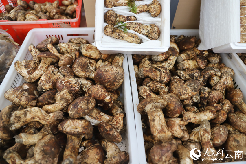 Photo shows fresh matsutake mushrooms at the Yunnan Nanhua International Wild Fungus Trading Center. (People’s Daily Online/Li Faxing)