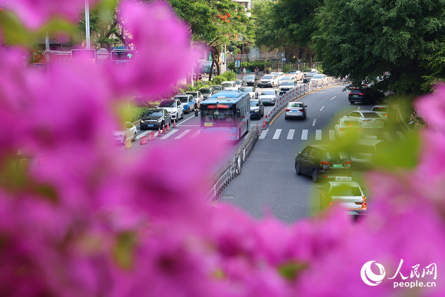 An "aerial flower gallery" witnesses the hustle and bustle of the city in Xiamen, southeast China's Fujian Province. (People's Daily Online/Chen Bo)