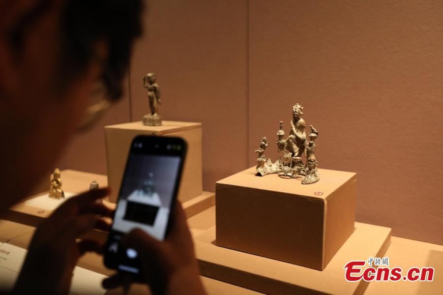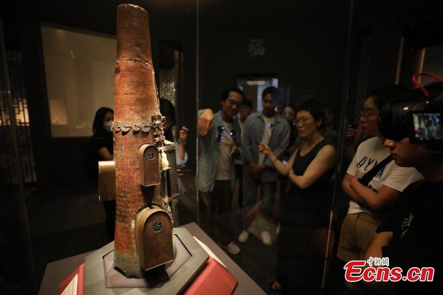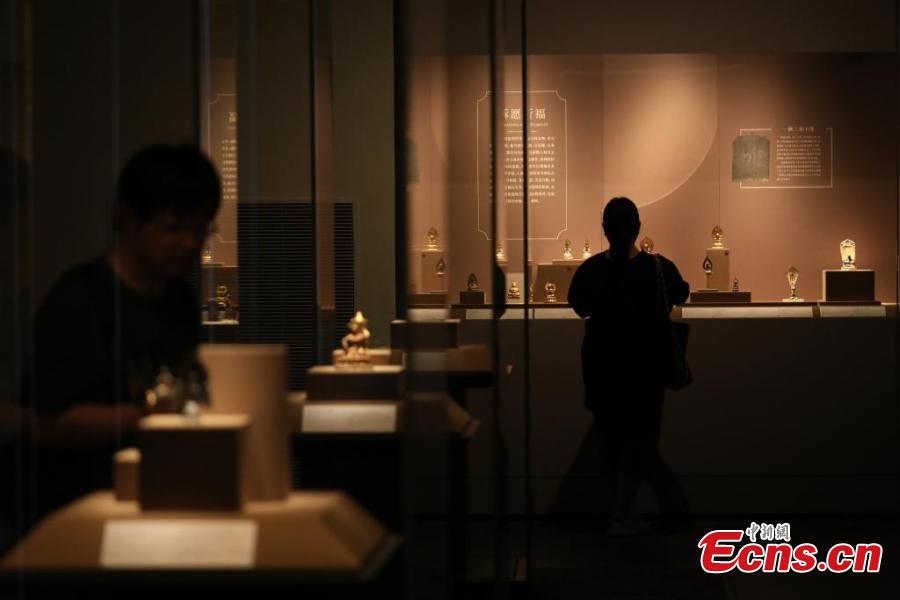 Visitors view exhibits from Yuanying Pagoda, the tallest pagoda in Shanghai at Shanghai Museum, Aug. 13, 2024. (Photo: China News Service/Zhang Hengwei)