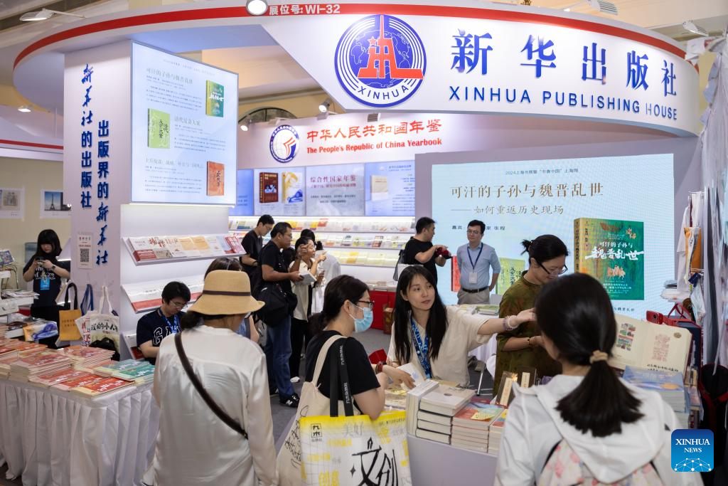 People visit the 2024 Shanghai Book Fair in Shanghai, east China, Aug. 14, 2024. The book fair kicked off on Wednesday and will last until Aug. 20. (Xinhua/Wang Xiang)