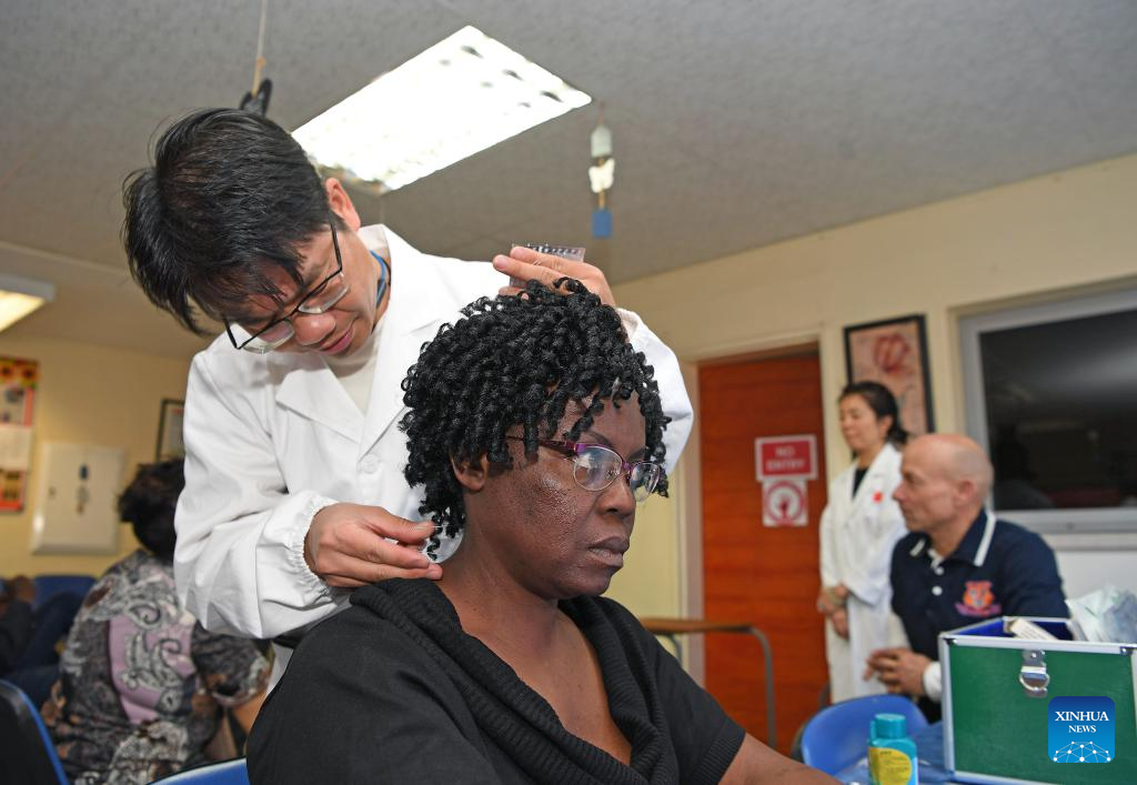 WINDHOEK, Aug. 14 (Xinhua) -- The 15th Chinese medical team to Namibia on Wednesday continued to promote traditional Chinese medicine (TCM), with the introduction of acupuncture to learners and staff members at Amazing Kids Private School in the Namibian capital of Windhoek.