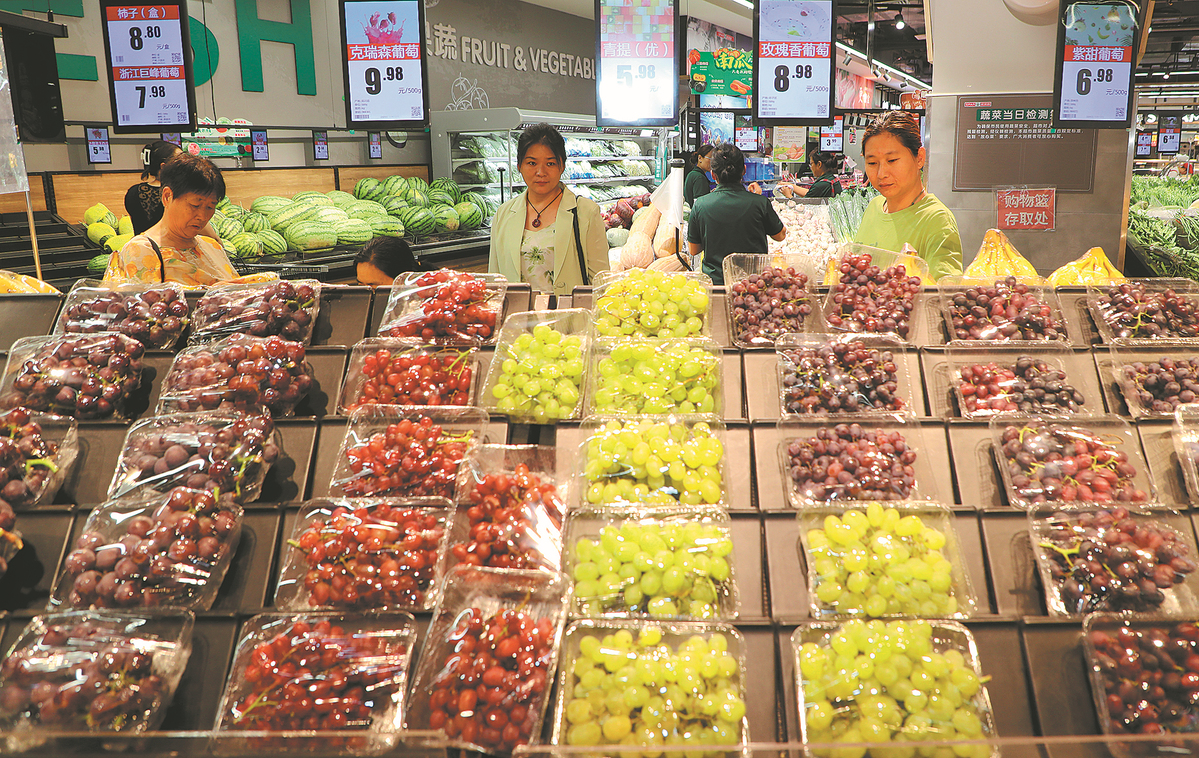 Customers select fruit at a supermarket in Dongying, Shandong province, earlier this month. (LIU ZHIFENG/XINHUA)