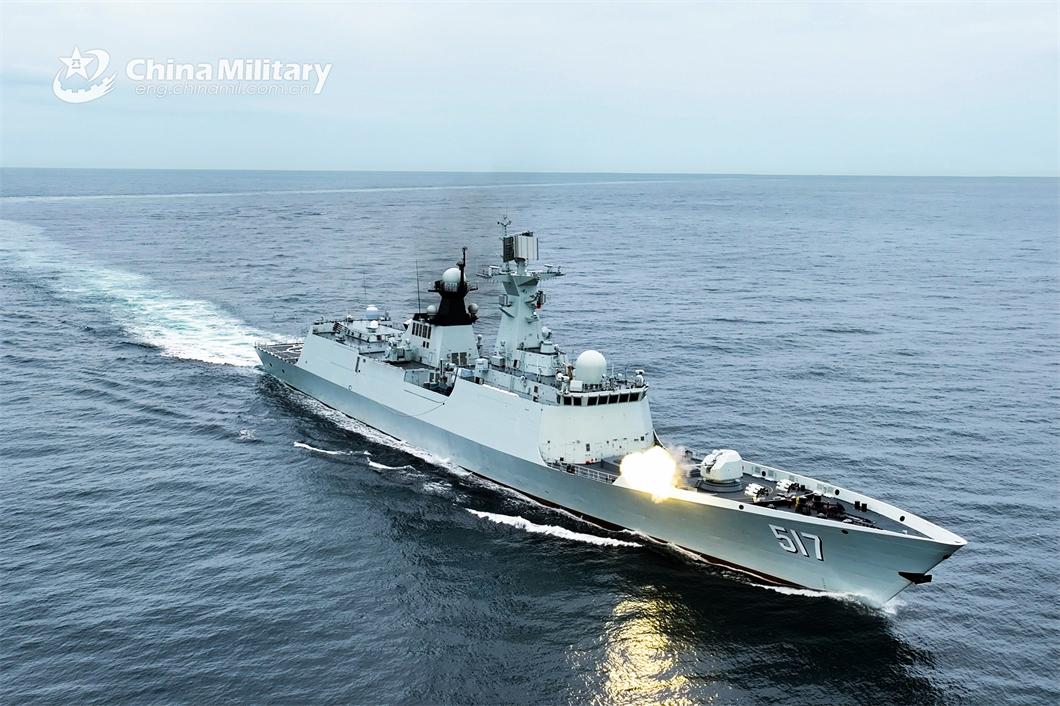 A frigate attached to a frigate flotilla with the navy under the PLA Eastern Theater Command fires its main gun at mock target during a multi-subject training on June 26, 2024. (eng.chinamil.com.cn/Photo by Liu Chuanbo)