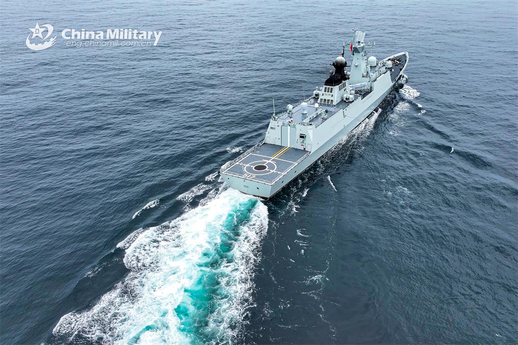 A frigate attached to a frigate flotilla with the navy under the PLA Eastern Theater Command sails towards designated waters during a multi-subject training on July 9, 2024. (eng.chinamil.com.cn/Photo by Liu Chuanbo)