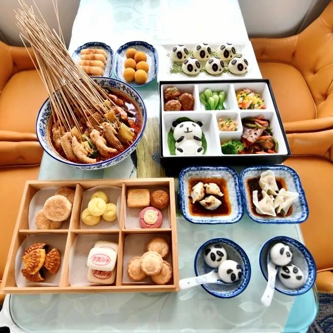 As suppertime neared, Liao went to the dining carriage with his friends, where they were welcomed by a wide array of delicacies, such as panda-shaped rice balls with nori and panda-shaped tangyuan made of glutinous rice and black rice. There were also many appetizing exquisite Sichuan dishes, including cold pot skewers, spicy Dan Dan noodles and leaf-wrapped sticky rice buns.