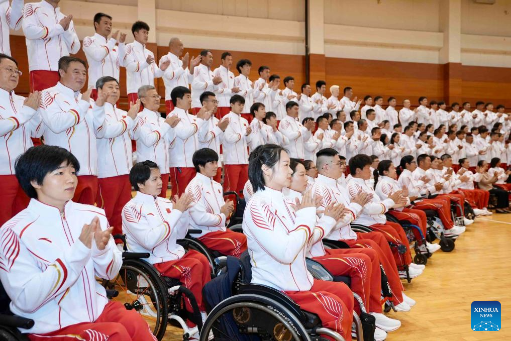 This photo taken on Aug .16, 2024 shows a general view at the inaugural meeting of the Chinese delegation for Paris 2024 Paralympic Games in Beijing, capital of China. (China Disabled Persons' Federation/Handout via Xinhua)