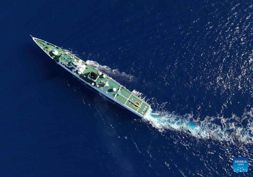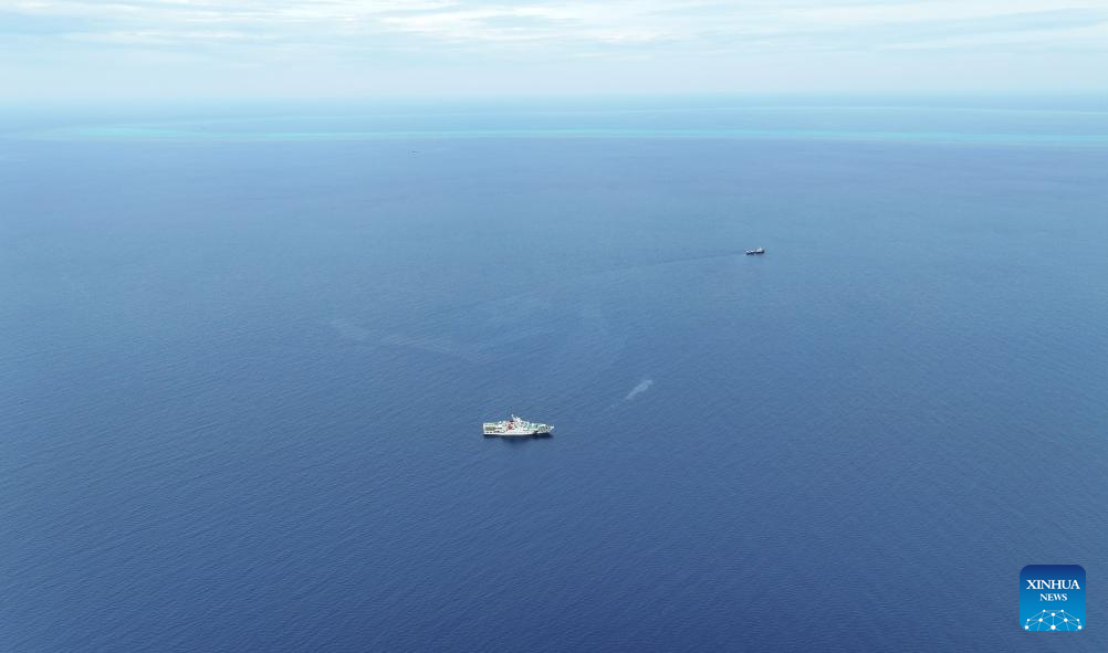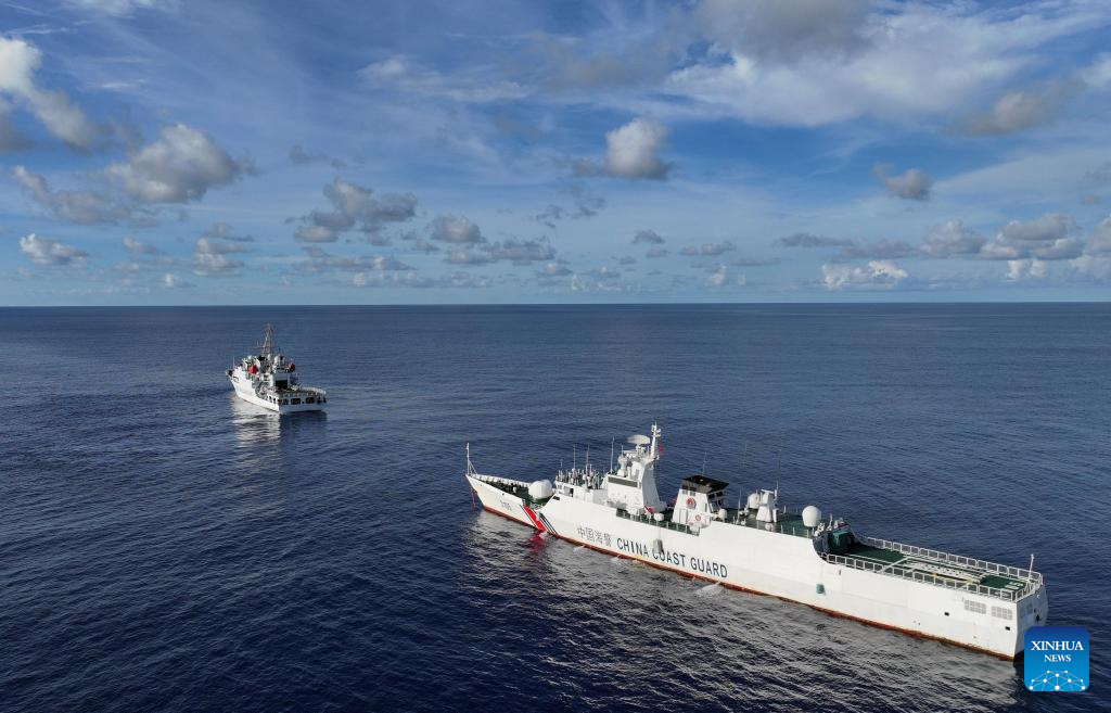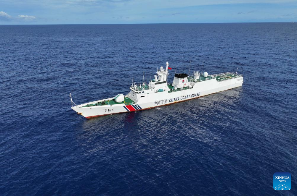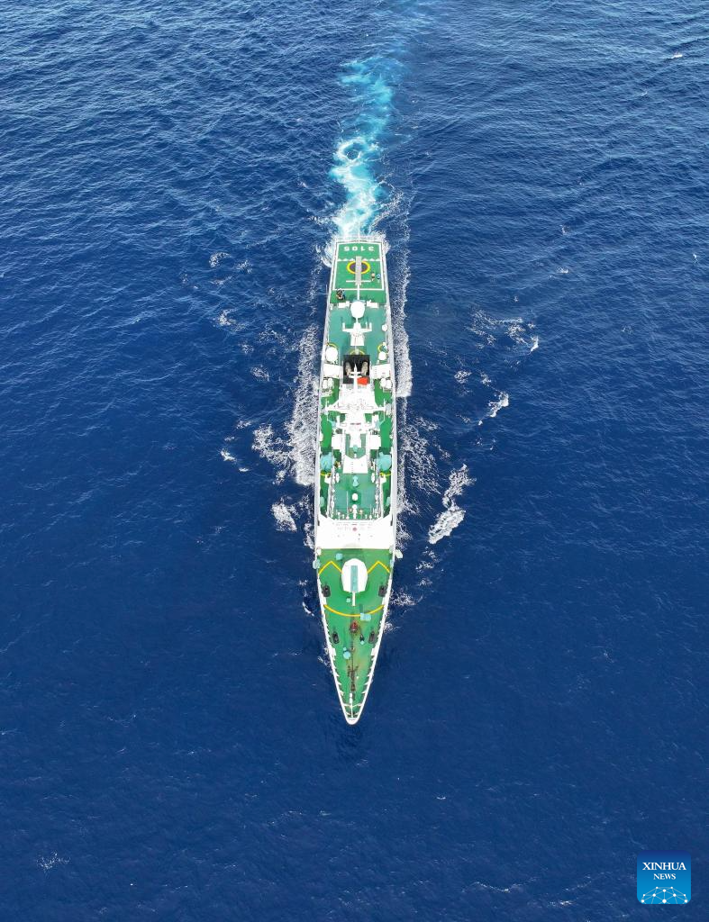 A drone photo taken on June 30, 2024 shows China Coast Guard (CCG) vessel Hebao patrolling in waters adjacent to China's Huangyan Dao.