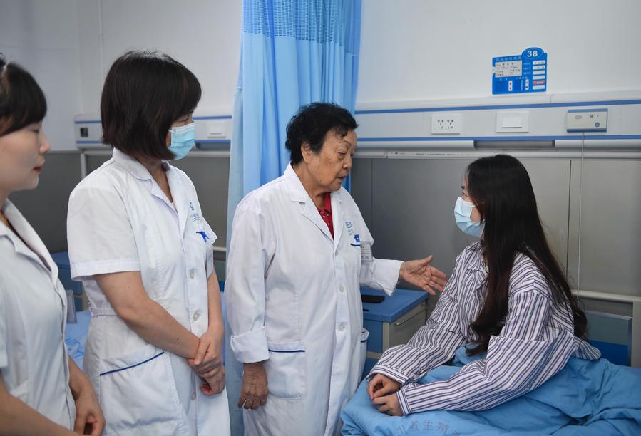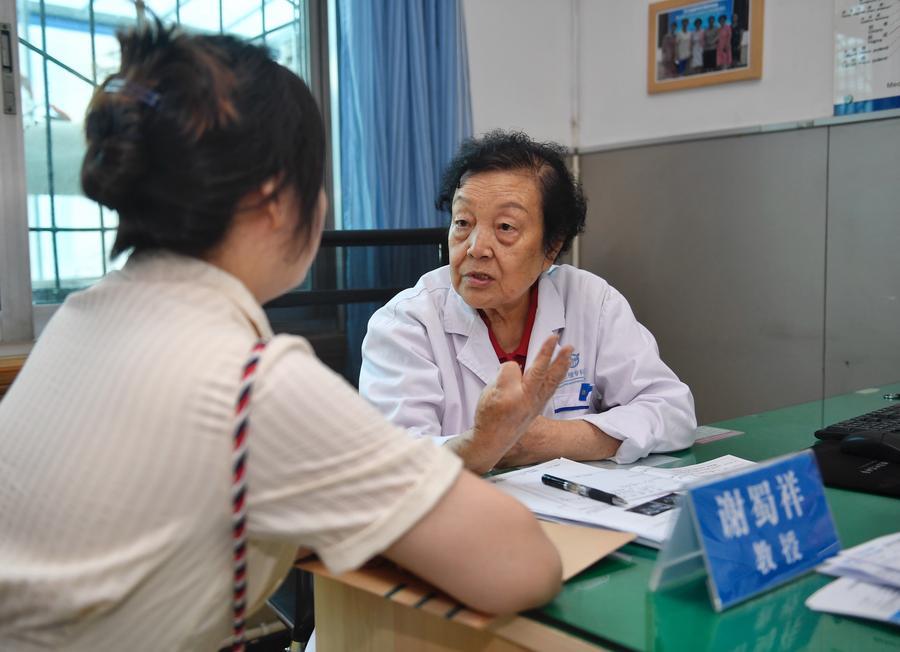 CHENGDU, Aug. 18 (Xinhua) -- Yue Yicheng was a pioneer of obstetrics and gynecology in China. She had been engaged in the medical treatment, teaching, scientific research and management of obstetrics and gynecology for six decades when she was alive. Her daughter Xie Shuxiang was deeply influenced by Yue's career and determined to follow her steps since childhood. After graduation, Xie Shuxiang has also been working in obstetrics and gynecology, and has made great achievements in the field of reproductive endocrinology. "We were not only mother and daughter, but also colleagues who had worked together for 30 years. We learned and made progress together," Xie Shuxiang said.