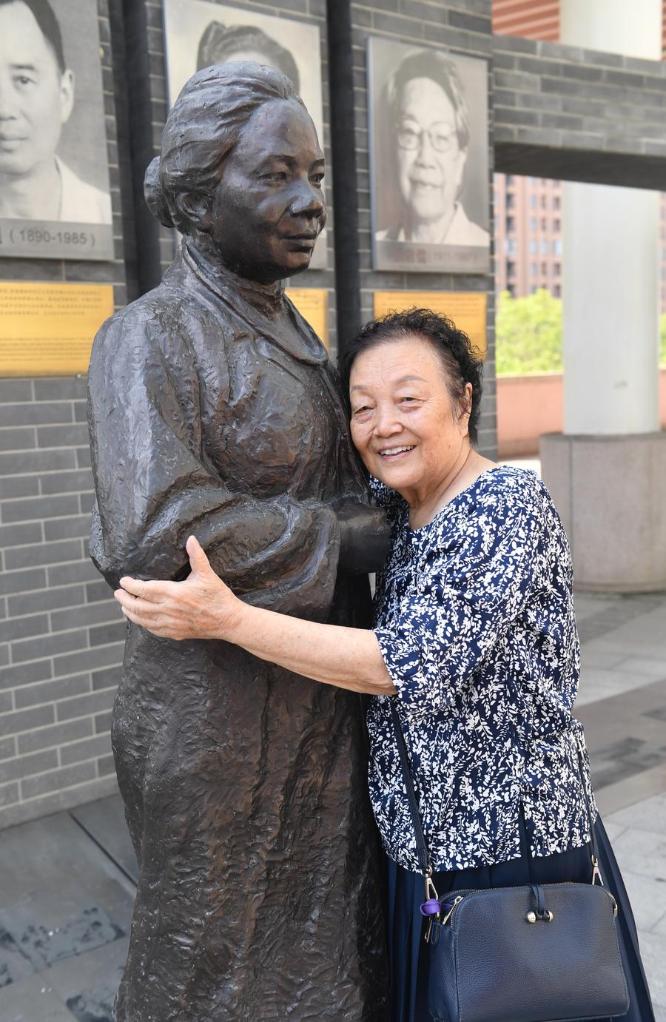 Xie Shuxiang hugs the statue of her mother Yue Yicheng at West China Women's and Children's Hospital in Chengdu, southwest China's Sichuan Province, Aug. 14, 2024. (Xinhua/Liu Kun)