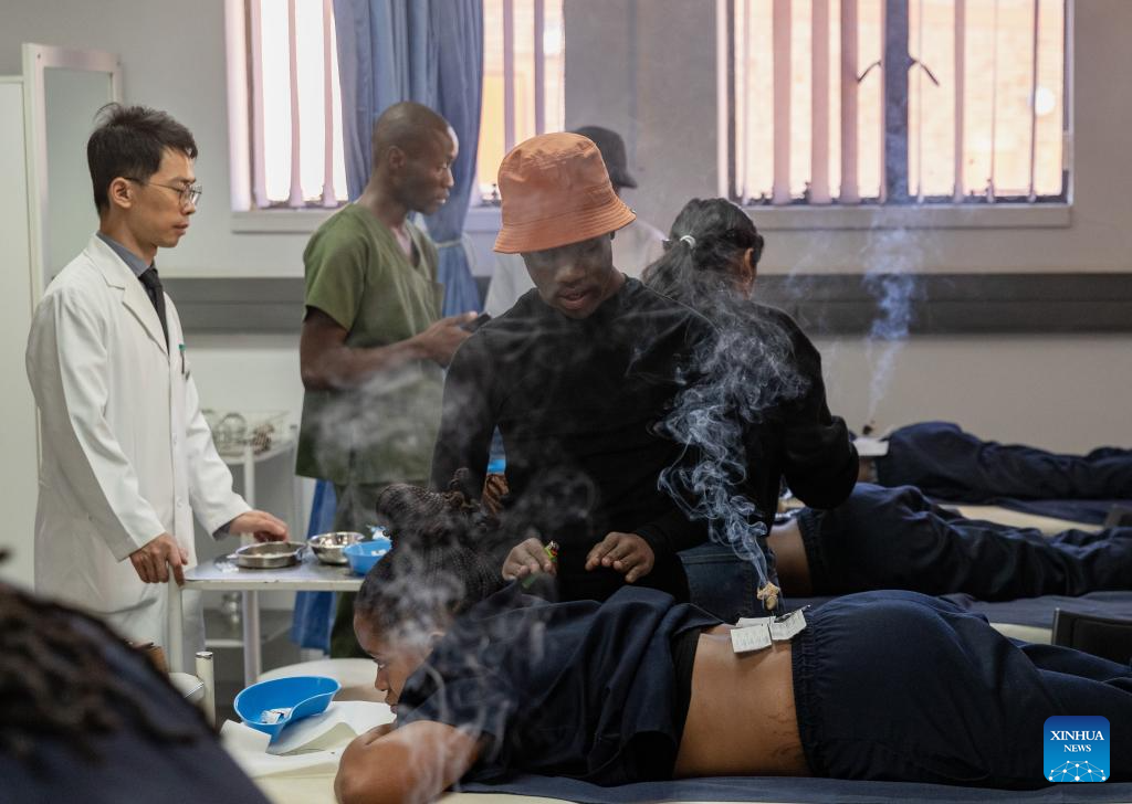 Students practice moxibustion during an acupuncture training at University of Johannesburg in Johannesburg, South Africa, on July 29, 2024. (Xinhua/Zhang Yudong)