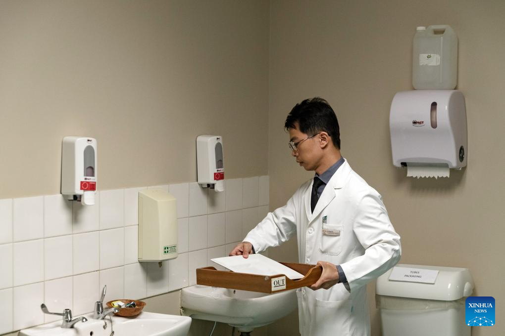 Hu Zijing prepares for an acupuncture training on moxibustion at University of Johannesburg in Johannesburg, South Africa, on July 29, 2024. (Xinhua/Zhang Yudong)