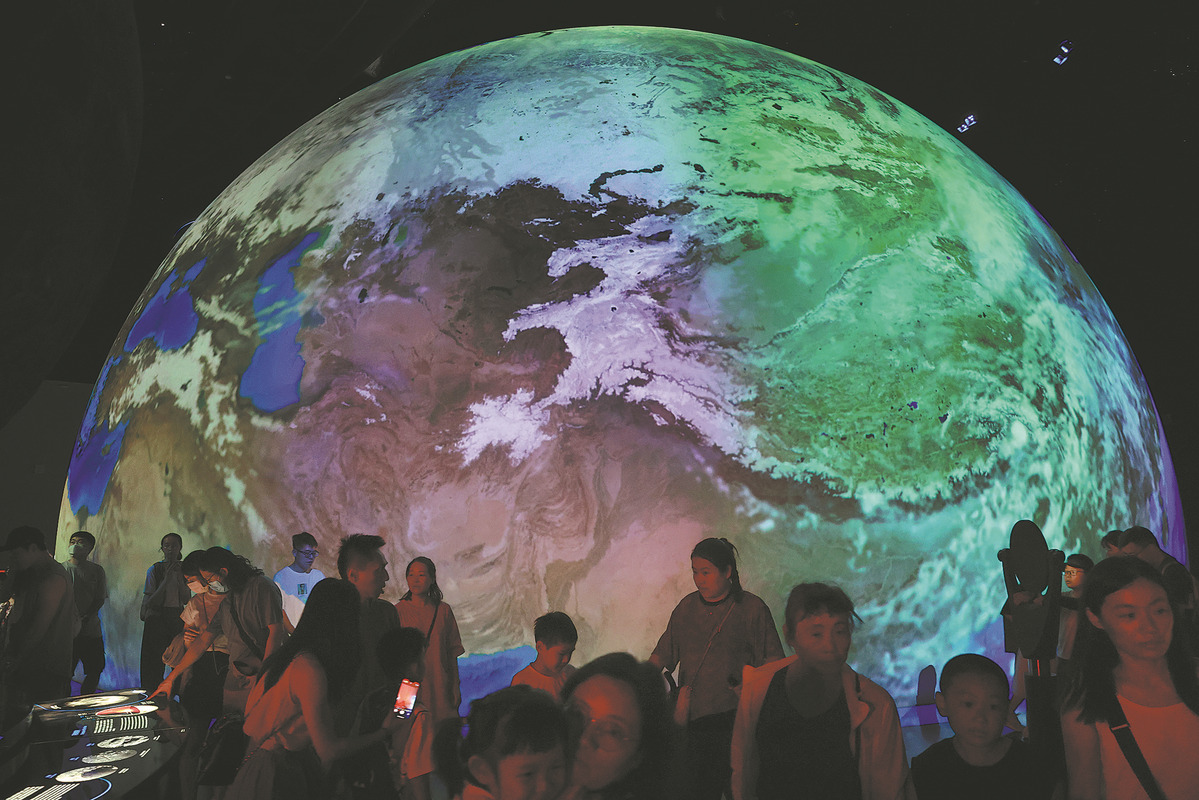 People visit the Shanghai Astronomy Museum in the Lin-gang Special Area of the China Pilot Free Trade Zone, on July 15. The museum attracts many students during the summer vacation. (CHINA DAILY)