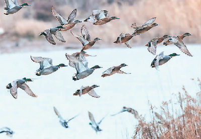Falcated ducks fly over the Chongming Dongtan National Nature Reserve in Shanghai. (Photo by Yuan Xiao/Xinhua)