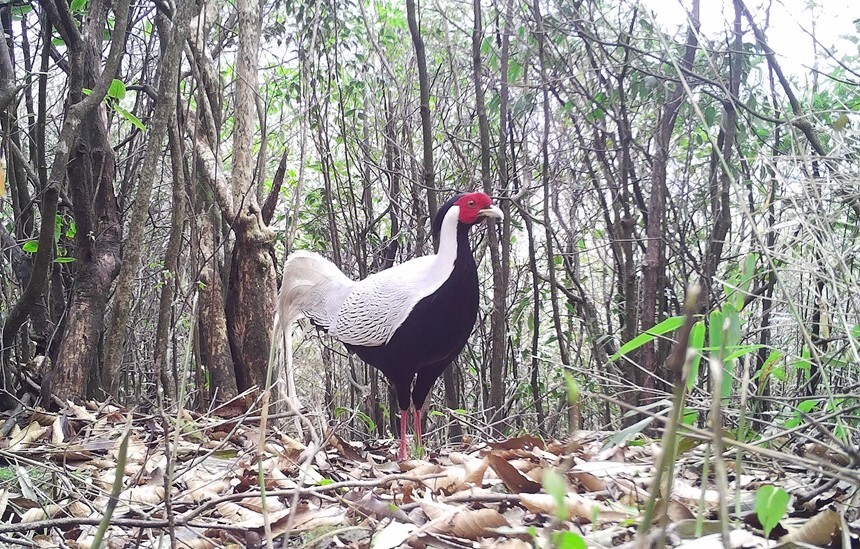 Photo show a silver pheasant in Mao'er Mountain National Reserve in Guilin city, south China's Guangxi Zhuang Autonomous Region. (Photo courtesy of the management office of Mao'er Mountain National Reserve)