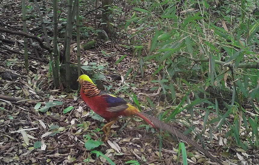 Photo shows a golden pheasant in Mao'er Mountain National Reserve in Guilin city, south China's Guangxi Zhuang Autonomous Region. (Photo courtesy of the management office of Mao'er Mountain National Reserve)