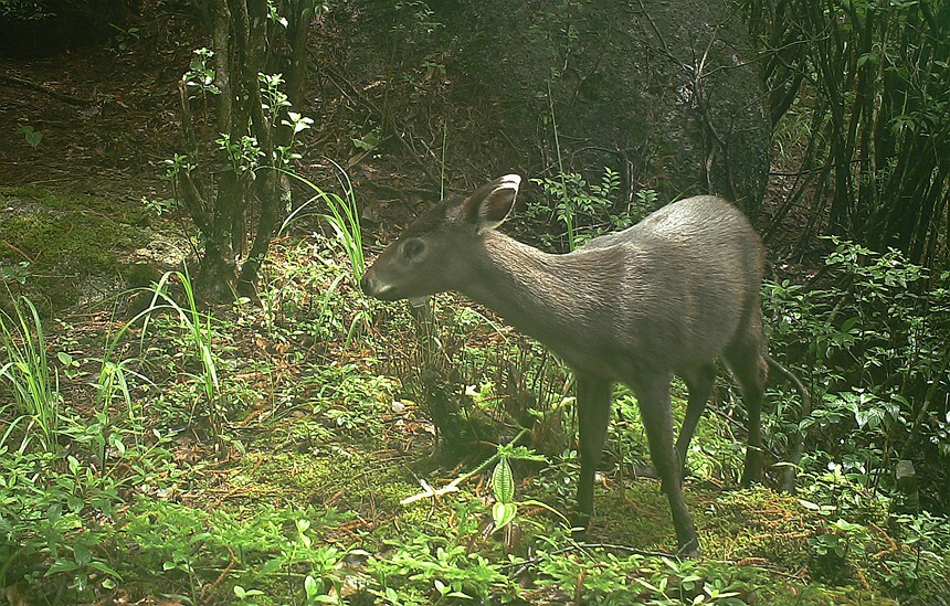Photo shows a tufted deer in Mao'er Mountain National Reserve in Guilin city, south China's Guangxi Zhuang Autonomous Region. (Photo courtesy of the management office of Mao'er Mountain National Reserve)
