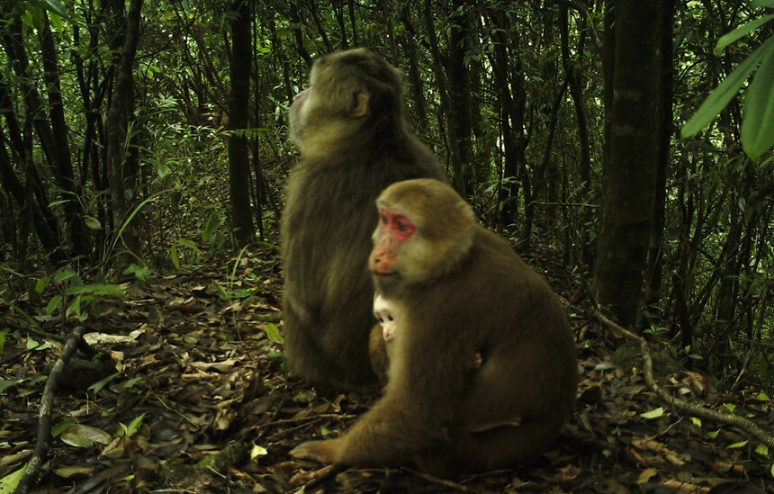 Photo shows Tibetan macaques in Mao'er Mountain National Reserve in Guilin city, south China's Guangxi Zhuang Autonomous Region. (Photo courtesy of the management office of Mao'er Mountain National Reserve)