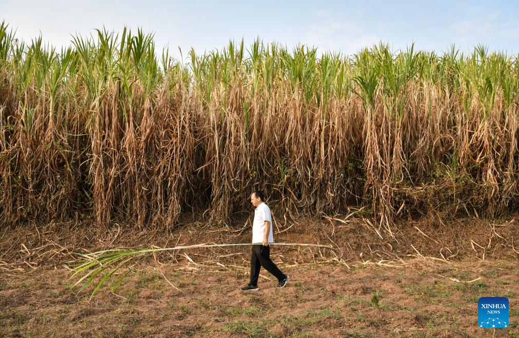 Chen Xiaobin collects a Juncao sample in Huye District, Rwanda, Aug. 14, 2024. (Xinhua/Han Xu)