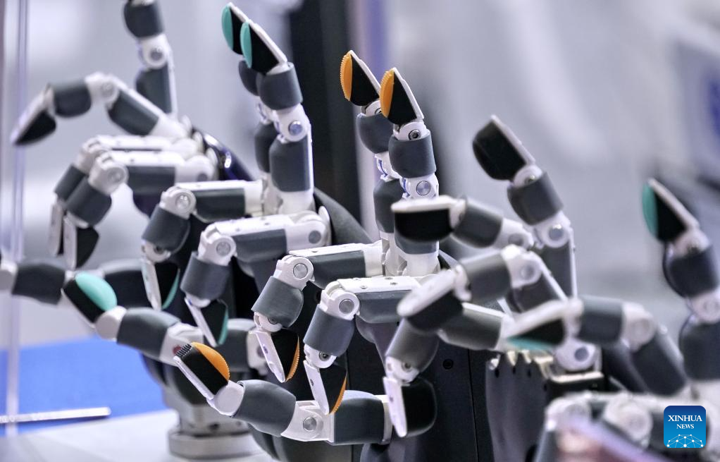 Intelligent robotic hands are pictured during the World Robot Conference 2024 in Beijing, capital of China, Aug. 21, 2024. The World Robot Conference 2024 opened here on Wednesday. (Xinhua/Li Xin)