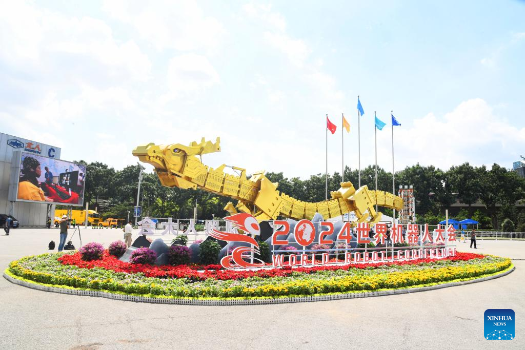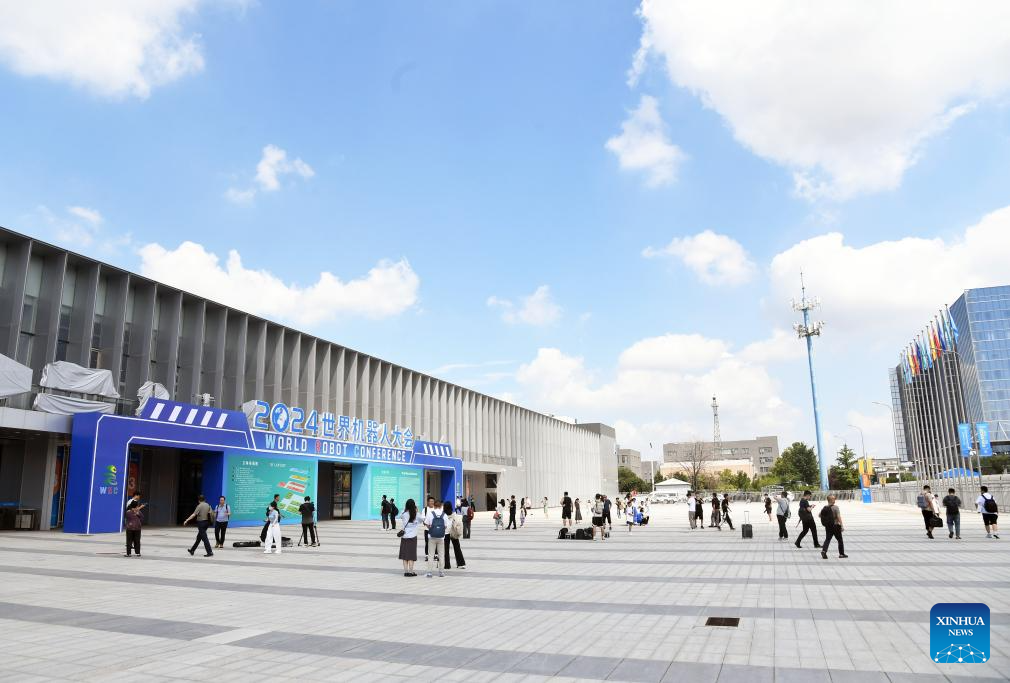 This photo shows an exterior view of the World Robot Conference 2024 in Beijing, capital of China, Aug. 21, 2024. The World Robot Conference 2024 opened here on Wednesday. (Xinhua/Ren Chao)
