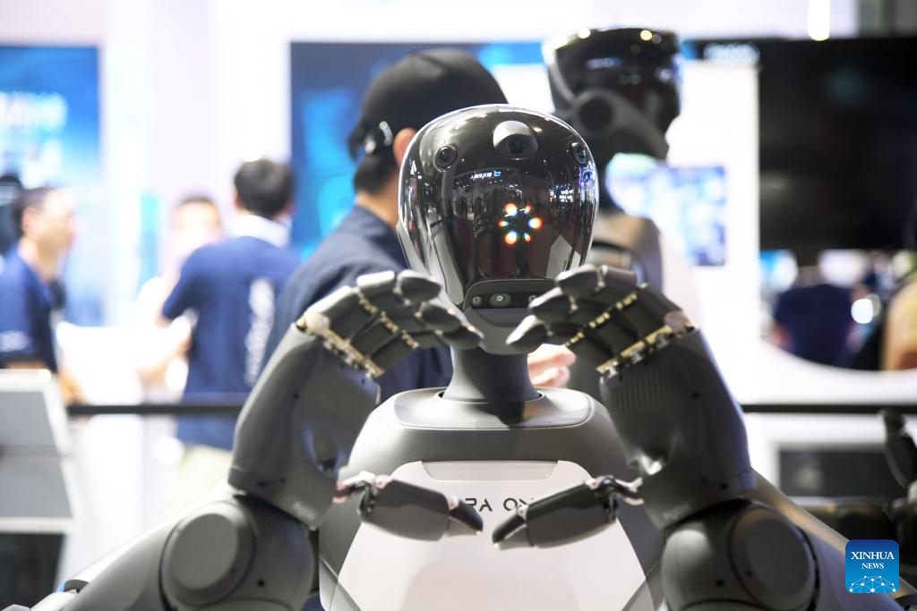 A humanoid robot is pictured during the World Robot Conference 2024 in Beijing, capital of China, Aug. 21, 2024. The World Robot Conference 2024 opened here on Wednesday. (Xinhua/Li Xin)