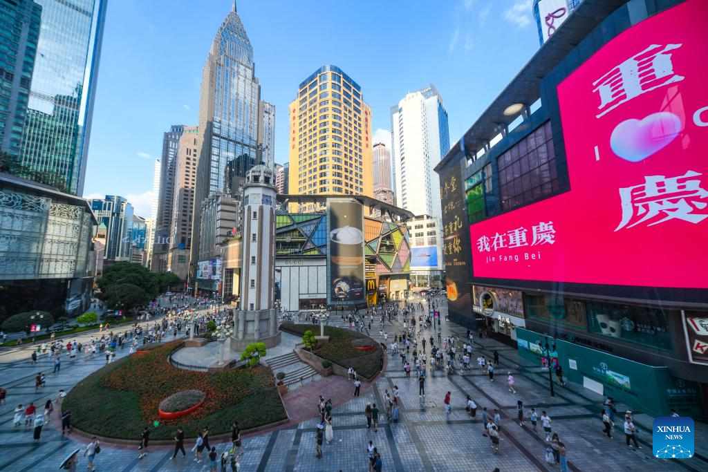 Tourists visit Jiefangbei, a core business area in southwest China's Chongqing Municipality, Aug. 21, 2024. (Xinhua/Wang Quanchao)