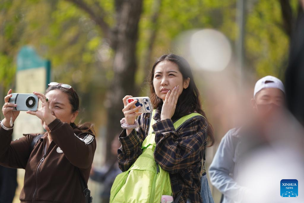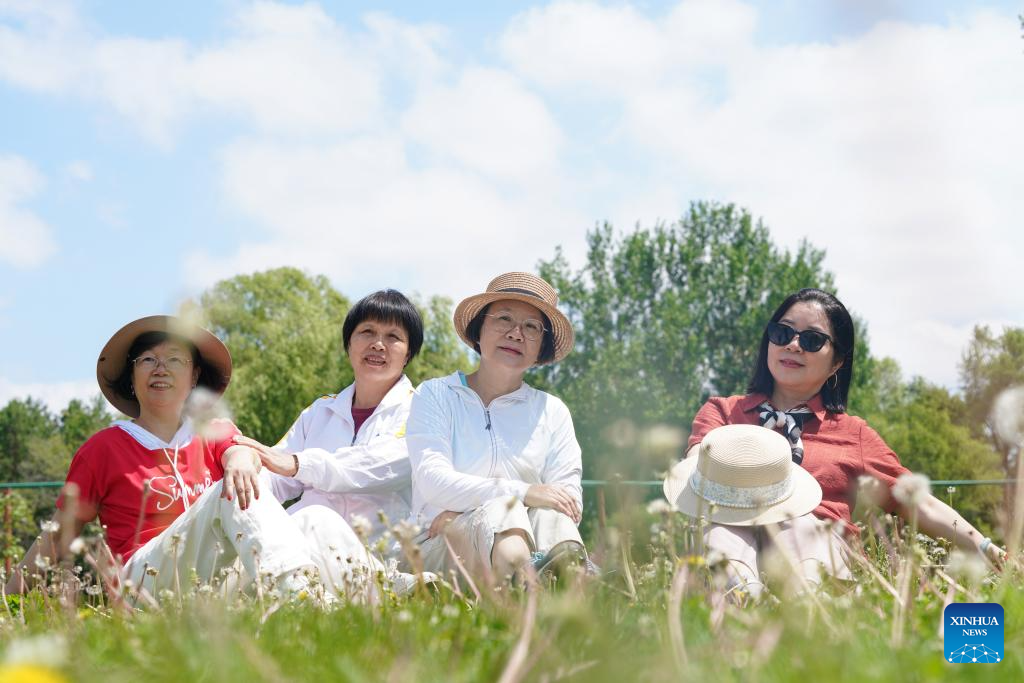 People visit Sun Island scenic spot in the Taiyangdao (Sun Island) National Wetland Park in Harbin, northeast China's Heilongjiang Province, May 2, 2024. The Taiyangdao National Wetland Park in Harbin, northeast China's Heilongjiang Province covers a total area of more than 10,000 hectares, of which more than 70% are wetlands. With its beautiful ecological environment, the park has become a good place for citizens and tourists to visit. (Xinhua/Wang Song)