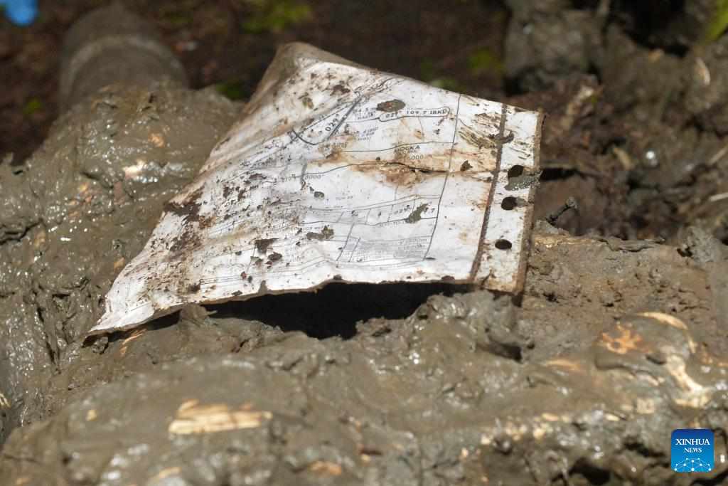 An air route map is seen at the site of a small plane crash in Chachoengsao province, Thailand, early on August 23, 2024. Five Chinese nationals were confirmed dead in the small plane crash in Thailand's eastern province of Chachoengsao on Thursday, the Chinese embassy in Thailand told Xinhua, citing Thai authorities. (Photo by Rachen Sageamsak/Xinhua)