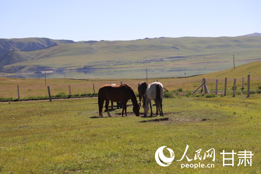 Located at the foot of the Qilian Mountains in northwest China's Gansu Province, the Shandan Army Horse-breeding Farm in August provides a picturesque landscape filled with greenery. Herds of horses, either peacefully nibbling on grass or galloping across the grassland, constitute a beautiful ecological scene.?
