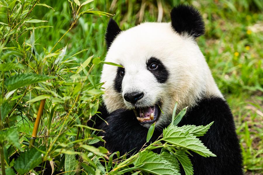 Giant panda "Meng Meng" is seen at Zoo Berlin in Berlin, capital of Germany, May 28, 2020. (Photo by Binh Truong/Xinhua)