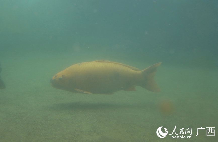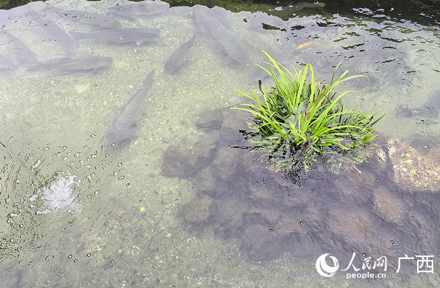 Photo shows fish in a fish pond in Gaozhai village, Huajiang Yao township, Xing'an county, Guilin, south China's Guangxi Zhuang Autonomous Region. (People's Daily Online/Fu Huazhou)