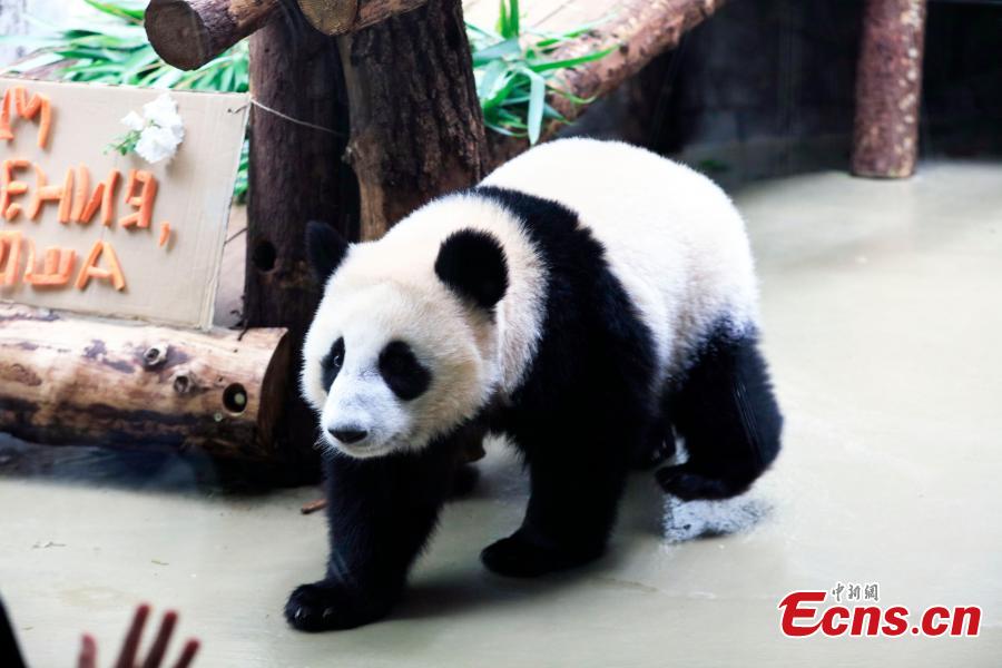 Katyusha, the first giant panda cub born in Russia, turned one year old on Saturday.