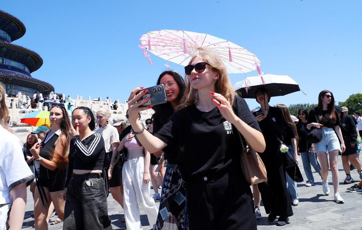 Foreign tourists visit the Temple of Heaven in Beijing, July 18, 2024. (People's Daily Online/Zhang Xiuke)