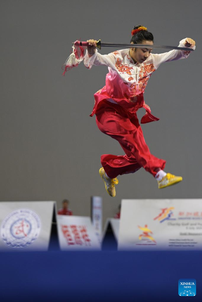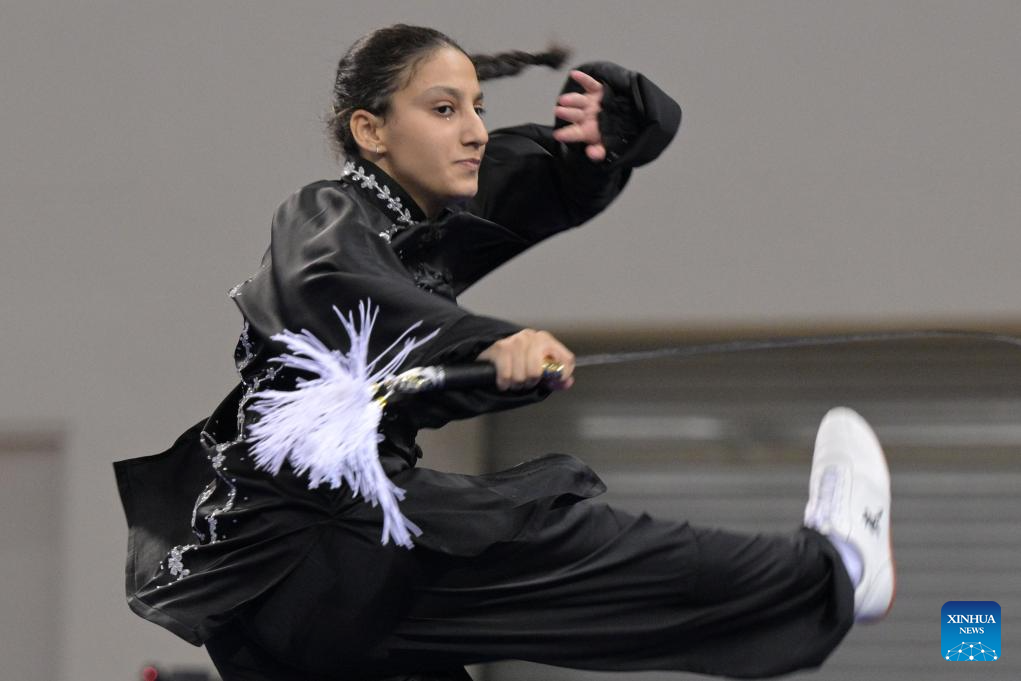 Miranda Wei of Canada competes during the women's 3rd set IWUF Compulsory Taijijian (36 Movements) competition at the 4th World Taijiquan Championships in Singapore, Aug. 26, 2024. (Photo by Then Chih Wey/Xinhua)