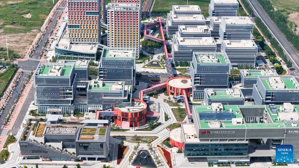 A drone photo taken on Aug. 15, 2024 shows a view of the Harbin sub-area of Heilongjiang pilot free trade zone (FTZ) in Harbin, northeast China's Heilongjiang Province. Known as China's "Ice City", Harbin has a reputation for its cool weather and diversified attractions, even during the summer months, which helps it remain attractive to tourists throughout the year. (Xinhua/Zhang Tao)
