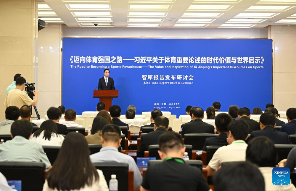 BEIJING, Aug. 27 (Xinhua) -- A think tank report titled "The Road to Becoming a Sports Powerhouse -- The Value and Inspiration of Xi Jinping's Important Discourses on Sports" was released here on Tuesday.