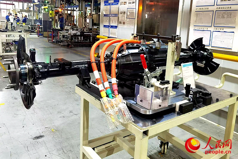 Photo shows a co-axial electric drive axle developed by Guangxi Automobile Group. (People's Daily Online/Qin Xin)