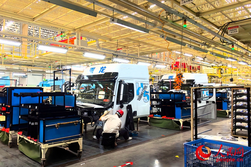 Photo shows the production workshop for commercial vehicles at Dongfeng Liuzhou Motor Co., Ltd., located in Liuzhou, south China's Guangxi Zhuang Autonomous Region. (People's Daily Online/Fu Huazhou)