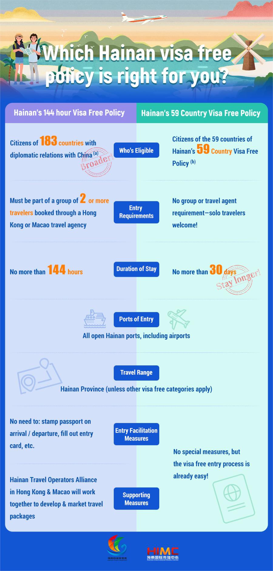 Since Hainan’s new 144 hour visa free policy was announced, some travelers have wondered — how do Hainan’s 59 country and 144 hour visa free policies compare? Which are they eligible for? We’ve put together a simple chart to help you choose the best way for you to travel to Hainan visa free.