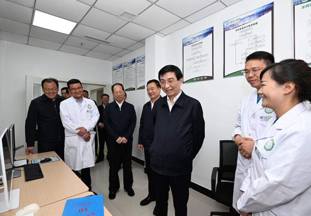 Wang Huning, a member of the Standing Committee of the Political Bureau of the Communist Party of China (CPC) Central Committee and chairman of the National Committee of the Chinese People's Political Consultative Conference, visits a hospital in Shannan City, southwest China's Xizang Autonomous Region, Aug. 27, 2024. Wang made a research tour on paired-up assistance for Xizang in Lhasa and Shannan. (Xinhua/Shen Hong)
