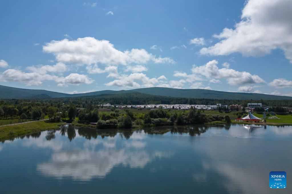 An aerial drone photo taken on Aug. 27, 2024 shows a resort hotel in Yichun, northeast China's Heilongjiang Province. (Xinhua/Zhang Tao)