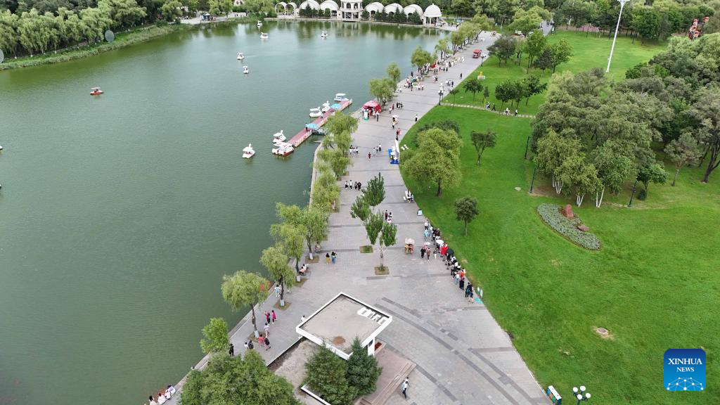 People have fun at Songyuan park in Mohe City, northeast China's Heilongjiang Province, July 4, 2024. (Xinhua/Xie Jianfei)