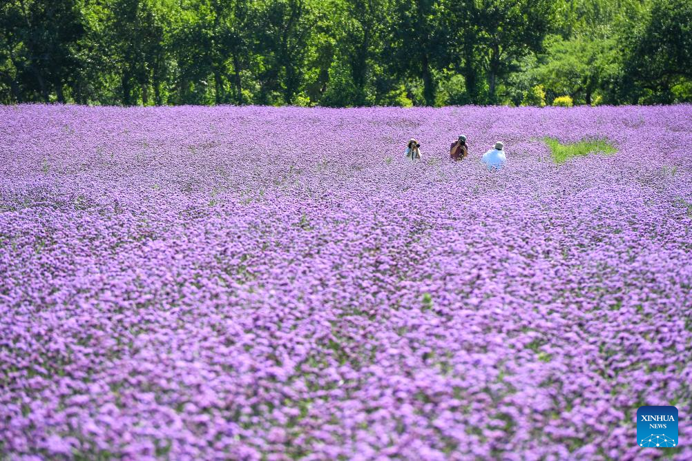Tourists have fun among flowers of the Chagan Lake National Nature Reserve in Songyuan City, northeast China's Jilin Province, Aug. 26, 2024. (Xinhua/Zhang Nan)