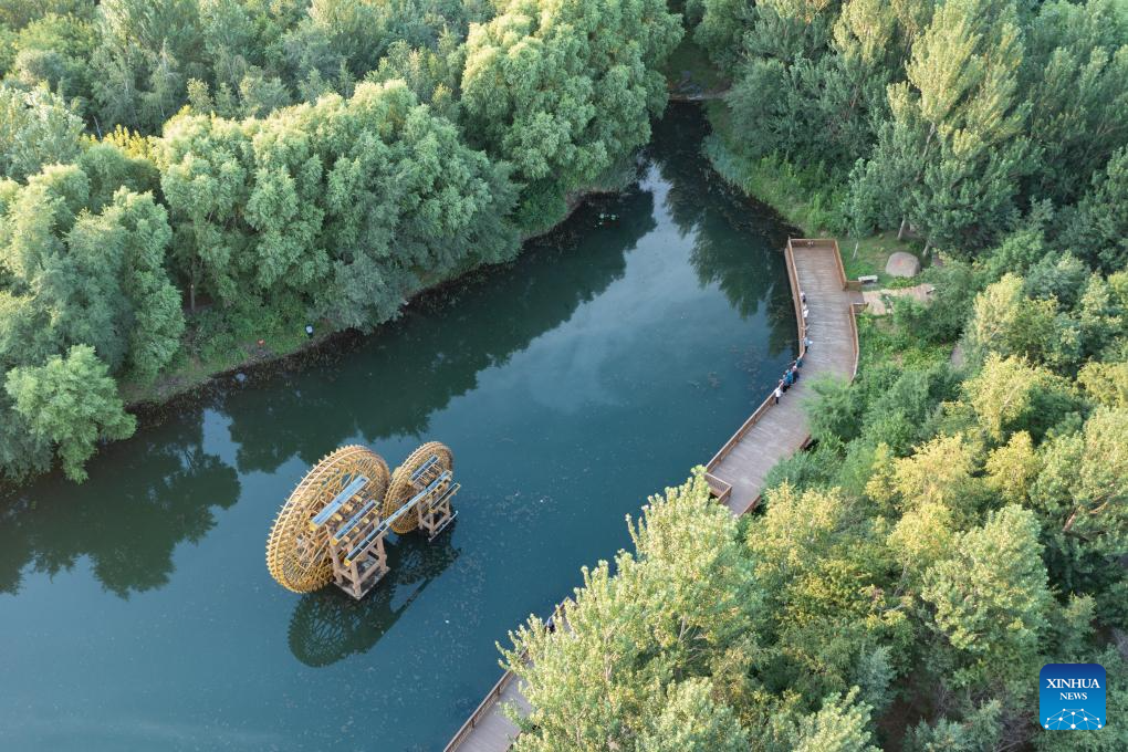 An aerial drone photo taken on Aug. 20, 2024 shows a view of in the Taiyangdao (Sun Island) National Wetland Park in Harbin, northeast China's Heilongjiang Province. (Xinhua/Wang Song)