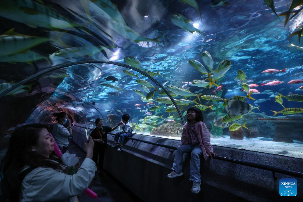 Tourists view sea life at Sunasia Ocean World in Dalian, northeast China's Liaoning Province, May 22, 2024. (Xinhua/Pan Yulong)