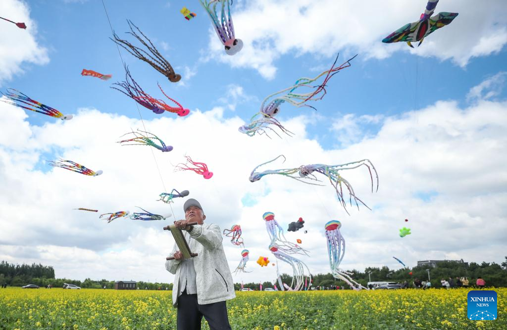 A man flies kites at a kite festival in Kangping County, northeast China's Liaoning Province, May 31, 2024. (Xinhua/Long Lei)